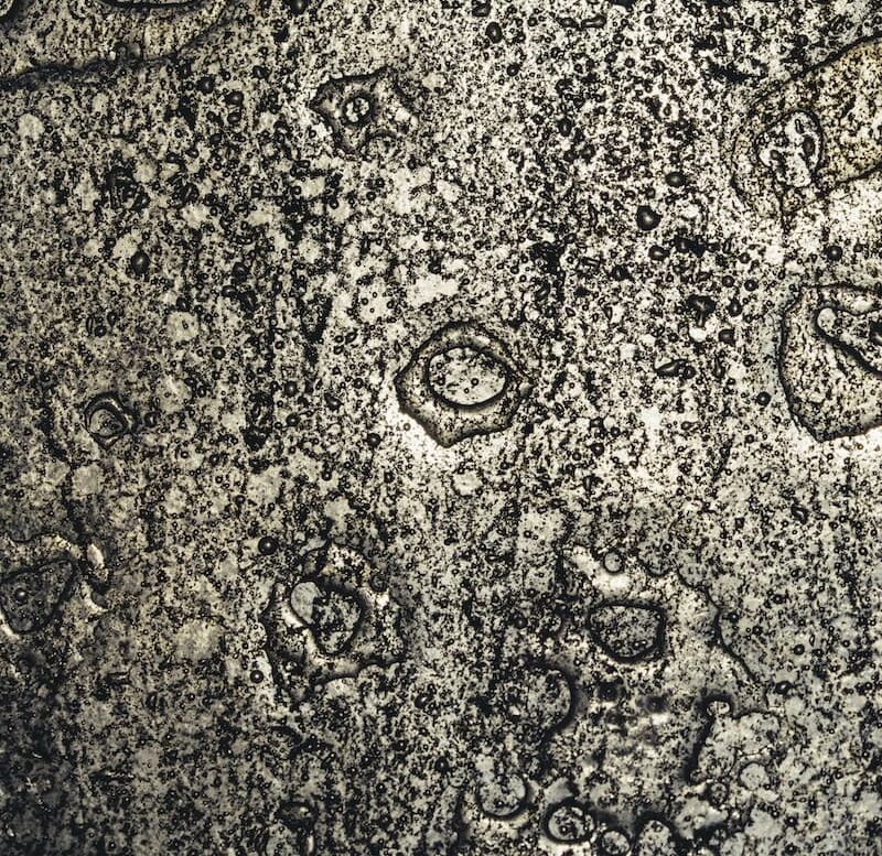 El resultado es una fusión entre el líquido y la piedra, entre lo que se retiene y lo que se escapa. Las planchas de vidrio reposan sobre una sólida estructura de hierro geométrica de metal que contrasta con la superficie acuosa del vidrio.