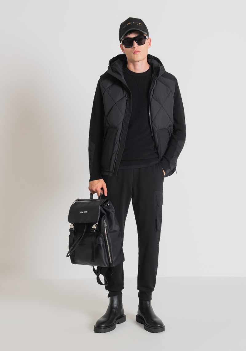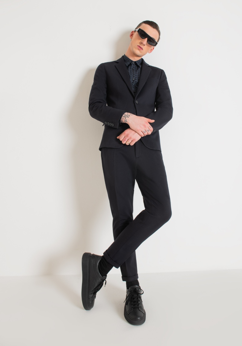 Como muchas otras propuestas de Antony Morato, el punto fuerte es el estilo contemporáneo y casual. Ahora, las piezas de sastrería cobran un especial protagonismo. Los trajes, de corte slim y proporciones modernas, se encargan de armar los looks más pulidos. Además, un traje negro nunca le viene mal a nadie. Complementando esta propuesta, tenemos prendas de outerwear en clave oscura como abrigos de espiga con capucha, prendas puffer y camisas con estampados en la misma línea.