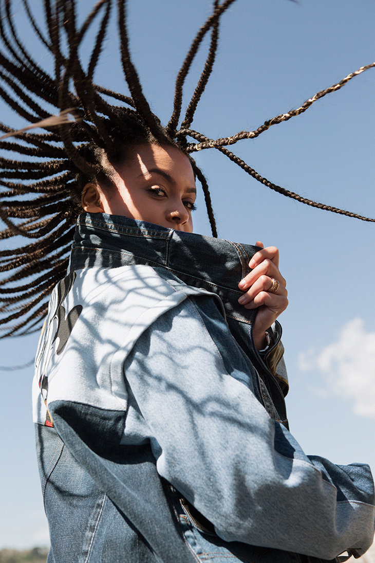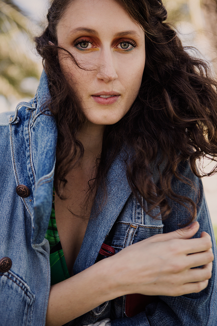 La modelo Clara Berry posando con The Iconic Jacket Desigual