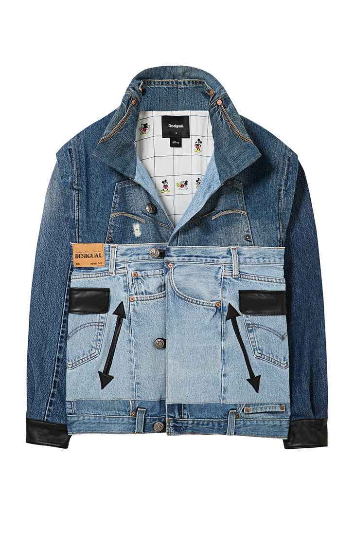 Cada Iconic Jacket Desigual es una pieza única. No puede haber dos modelos iguales porque está hecha totalmente a mano con retales de jeans (igual que el modelo original de Thomas Meyer), y un patch de Mickey Mouse original a la espalda y en el forro. Es 100% de algodón con aplicaciones de cuero en puños. Mola mucho.