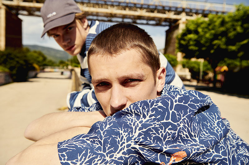 En esta primera drop se incluye una gran variedad de prendas, calzado y accesorios entre los que destacan los twin sets efecto lavado compuestos por sudaderas con o sin capucha y bermudas estilo jogger. También está muy presente la camisería de viscosa que en esta ocasión se llena de coloridos estampados tanto posicionales como all over.
