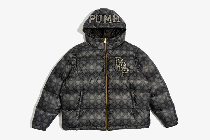 La cápsula de Puma x Dapper Dan consta de cinco piezas, incluida una nueva versión de la zapatilla Clyde. La ropa no es apta para sosos y presenta una estética de lujo repurposed. A parte de un conjunto de chándal de corte clásico monogrameado, la cápsula nos ofrece dos camisetas básicas con el logo en pedrería y un abrigo puffer reversible.