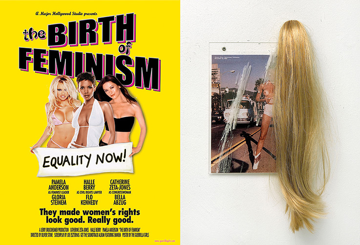 Izq. Guerrilla Girls, The birth of feminism, 2001. Póster. Cortesía de las artistas. Dcha. Pepo Salazar, Hijo de la fatalidad 05, 2010. Collage. Cortesía del artista.