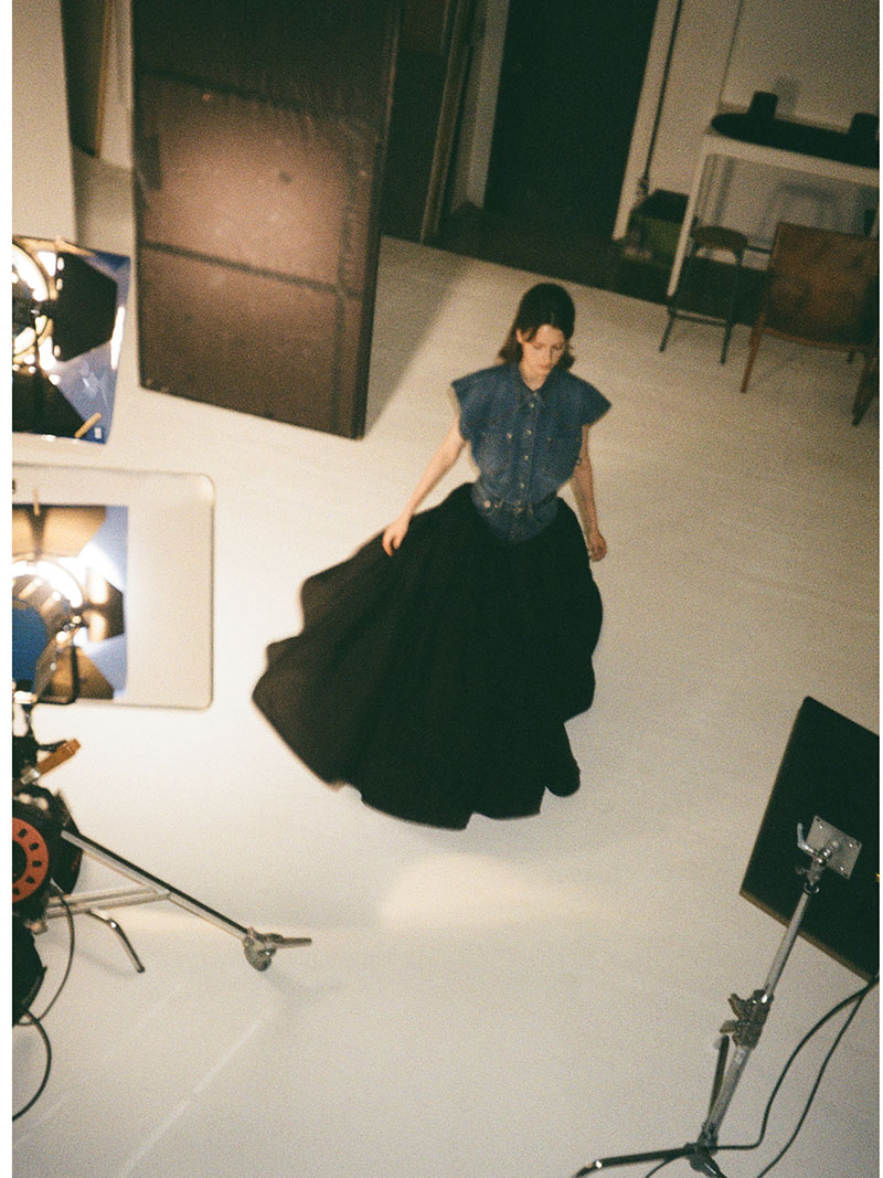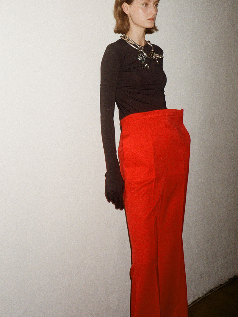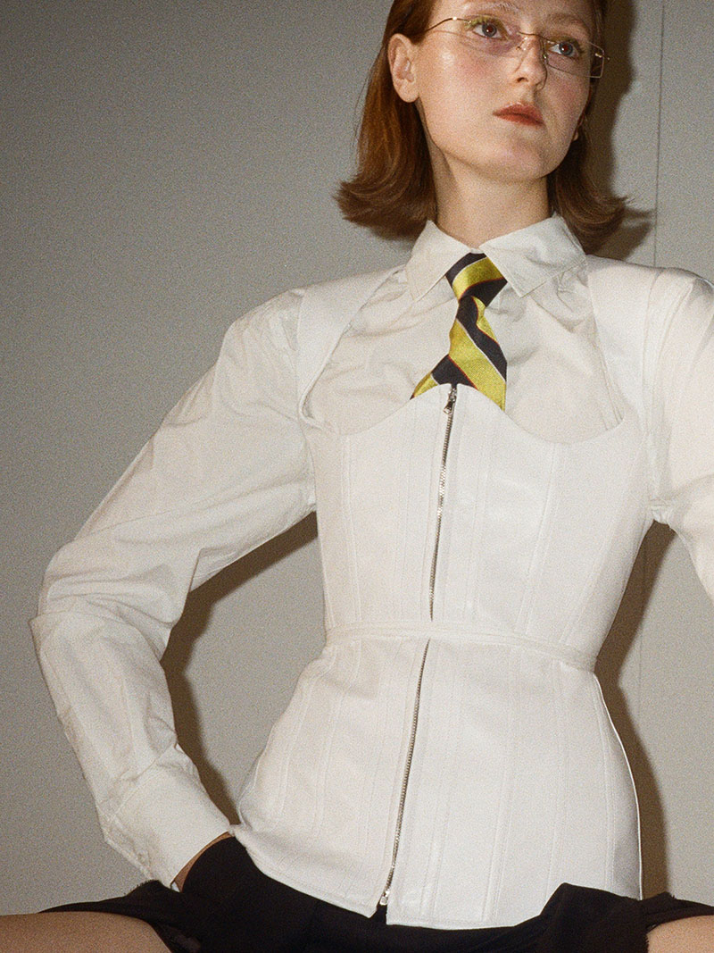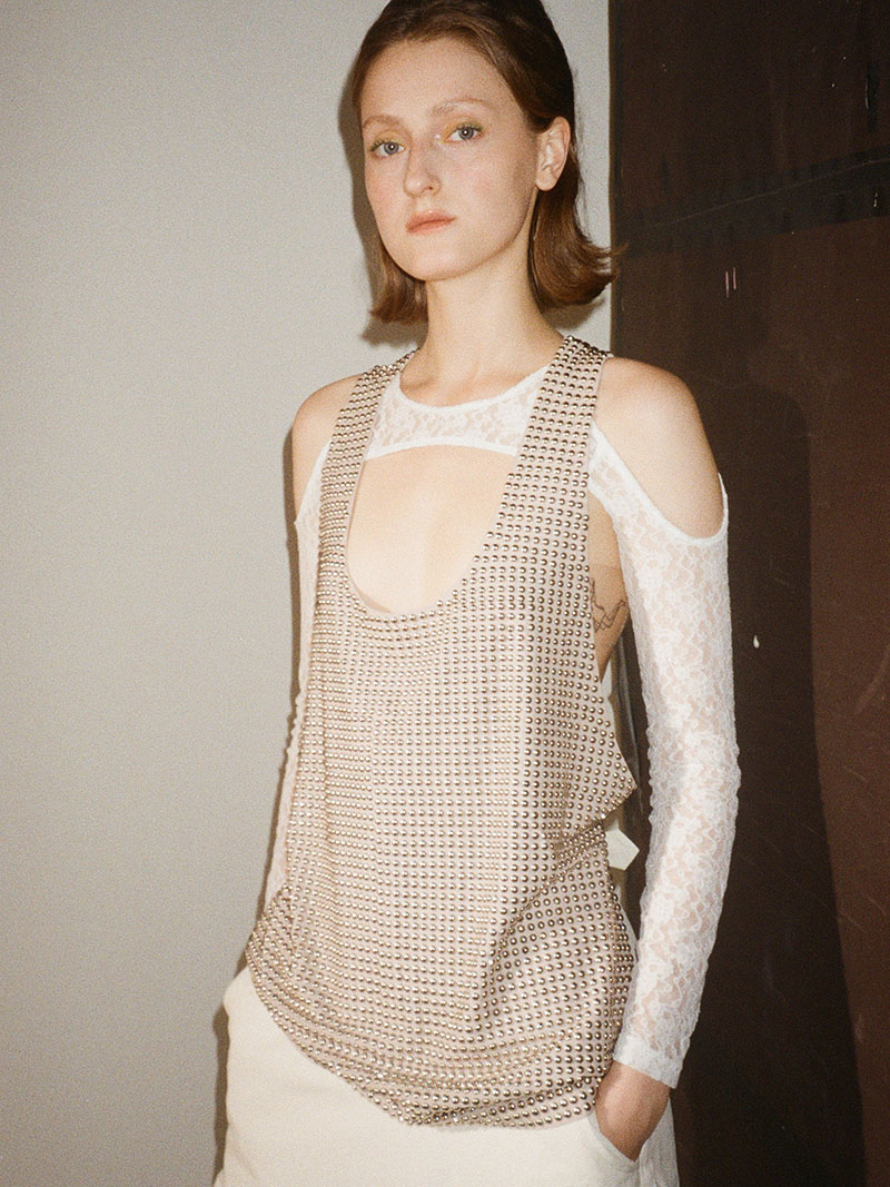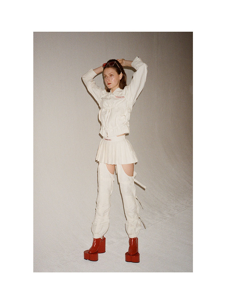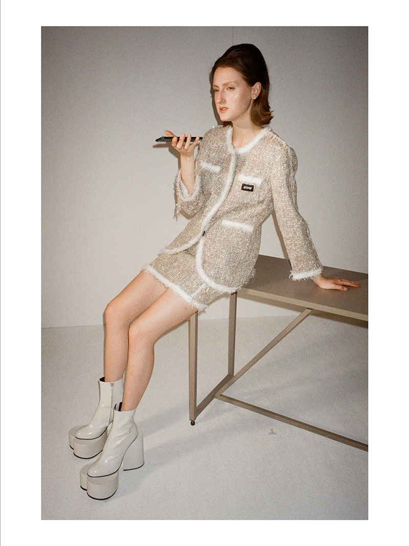 Las prendas tuneadas y el estilo girly con colores pastel se ha convertido en el sello de PushButton desde sus comienzos. Partiendo de esto para esta nueva colección, el diseñador se ha enfocado en el concepto de belleza natural para conducir el diseño de sus nuevas propuestas, entre las que nos encontramos faldas de copa ancha, vestidos de gasa, blusas estilo bustier, gabardinas desestructuradas o los pantalones de traje con silueta deformada.