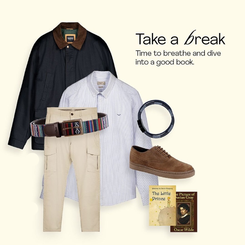 Terminamos con nuestra serie de “qué me pongo para” con un look clásico, casual y versátil que vale para muchísimas situaciones y escenarios. La pieza estrella de este conjunto es una chaqueta de lona encerada con cuello de pana, que da un aire súper old money. Debajo, podemos llevar una camisa de rayas azules de toda la vida y unos chinos con bolsillos cargo para no tener que llevar bolso. Y para romper con lo sobrio, podemos agregar un cinturón trenzado de colores a la cuestión.