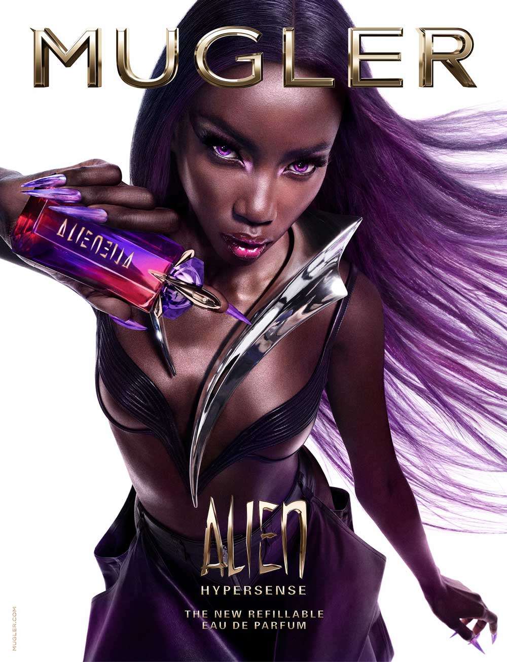 Solo alguien como Anok Yai podría ser la cara de Alien Hypersense de Mugler, un nuevo perfume que parece que viene de otro planeta, totalmente extraterrestre. Igual que la súper top model.