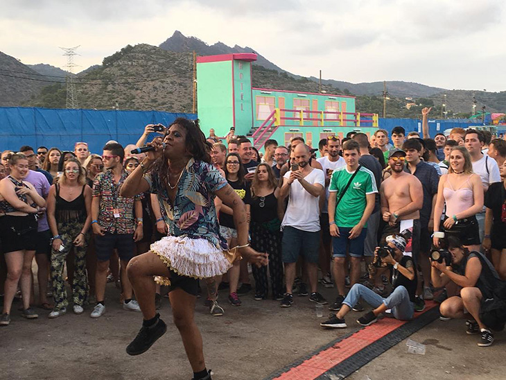 Mykki Blanco en el FIB de Benicássim. ¡Qué maravilla! Se volvió loco (entendemos loco a que hizo lo que le dio la real gana, eso siempre es bueno, para mí, al menos) y aprovechó que hubo poca gente viéndole, así que bajó y bailó, cantó, tiró un contenedor, perdió el micrófono. Una delicia, ¡un espectáculo! Que eso es lo que quiero ver en un concierto, para ver lo de siempre, ya está lo de siempre. (https://www.instagram.com/p/BWiacG-lMhU/?taken-by=nadialeald)