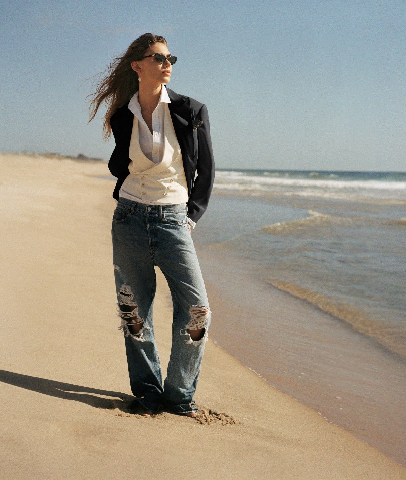 No solo disfrutamos de cada escena de la campaña por la actitud de sus protagonistas, sino también por la presencia de las siluetas clásicas. Eso sí, no son las mismas que vimos en 1967 (cuando, con tan solo 28 años, Ralph Lauren ya tenía su primera colección de corbatas bajo el nombre de Polo); han sido actualizadas. Para esta colección primavera 2025, vemos sensuales drapeados que capturan al instante el romanticismo ecléctico y la ruda elegancia de las ciudades costeras.