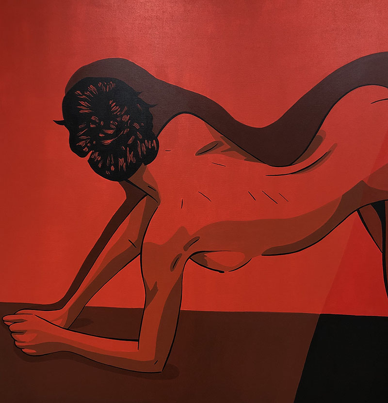 Esta exposición en realidad se iba a inaugurar el 19 de marzo de 2020. Cinco días antes se declaró el Estado de alarma y se tuvo que suspender. Y esos lienzos que estaban casi colgados en las paredes de la sala se tuvieron que ir al cielo de las exposiciones perdidas. Todo el tiempo del confinamiento y las restricciones ha sido de bastante sequía artística, pero le he seguido dando vueltas a esa exposición que no fue. En esto meses alguna obra salió del catálogo. Otras entraron. Pero para mí todo este tiempo tan extraño ha girado en torno a esas dos palabras: Amor y asco. Si eso no es una metáfora, se le parece bastante.
