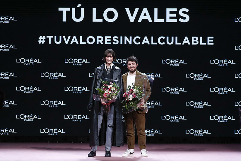 Tras las votaciones llegó el momento de conocer cuál era la firma que se alzaba ganadora del Premio L’oreal Paris de esta temporada. Alba Lago, encargada en esta ocasión de conducir el acto, pronunciaba el nombre de Redondo Brand junto a Mónica Pueyo, directora de Comunicación de L’Oréal Paris. Una merecidísima victoria aunque ni siquiera habíamos podido ver aún el desfile que se celebró tras finalizar la entrega de premios.