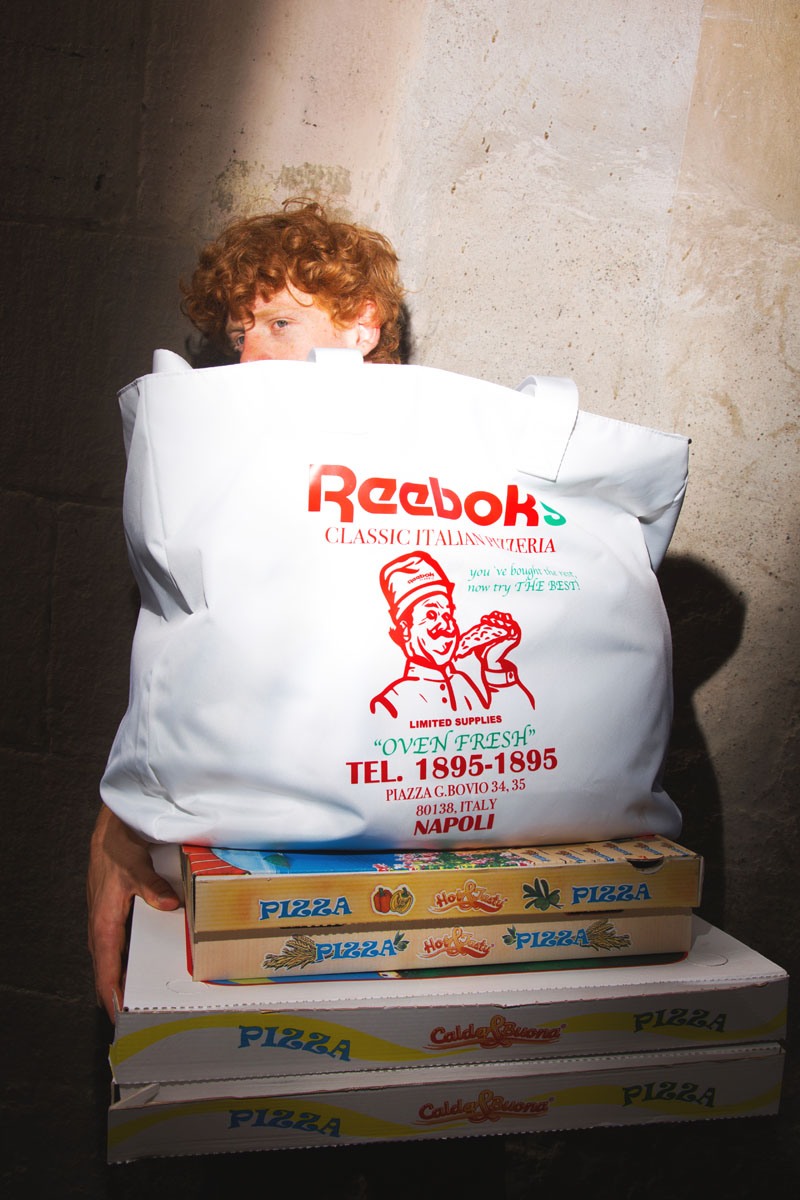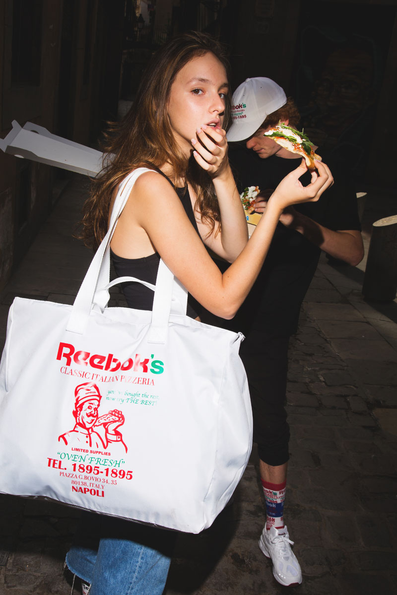 Reebok Food Packs propone una colección que va desde maxi bolsas de estilo retro que bien podrían ser el cartel luminoso de una pizzería de Roma o un take away de Pekín. Siguiendo la misma línea de la colección, las camisetas, calcetines y gorras están decorados con diseños gráficos de esos puestos de street food que ocupan las aceras de todo el mundo.