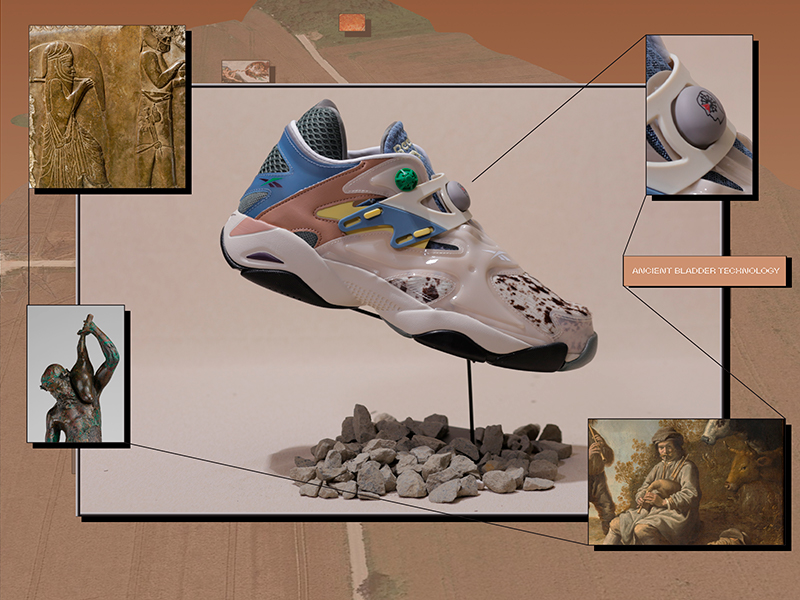 En el corto podemos ver como, cuando se utilizan en sintonía estos dos hallazgos en el momento y lugar adecuados, pueden abrir una puerta a un viaje que nos llevará a otra dimensión. El modelo Reebok x Brain Dead Pump Court o The Battery, desafía las convenciones y sus líneas onduladas le confieren un aspecto agresivo. En él predominan las capas multicolor en tonos tierra: gris espacial, verde, blanco roto, orquídea y marrón crudo.