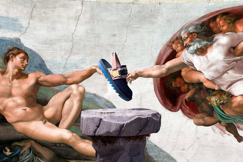 Las sandalias Reebok x Brain Dead Beatnik, o The Key para los que se han interesado por los hallazgos de Solomon, son sin duda un calzado imponente, característica que le confiere la combinación de una media suela verde y una suela gris pizarra con ranuras profundas. Este modelo está cerrado por el empeine de ante que combina el azul marino con una textura de animal print, creando la forma de un zueco. A esta mezcla se incorporan la correa del talón en color marrón crudo y la del antepié en verde hiedra, cada una decorada con el detalle de Brain Dead y unidas por una hebilla amarilla con el logotipo Reebok Vector.