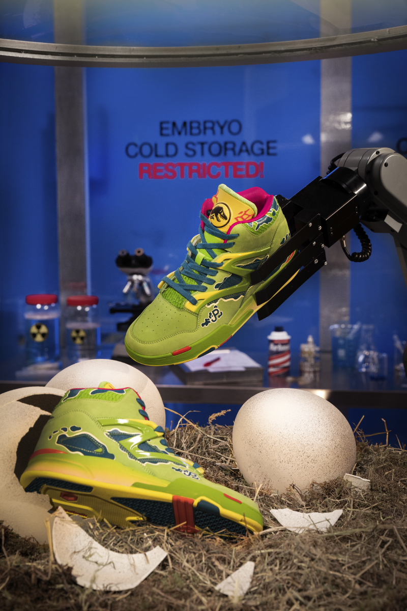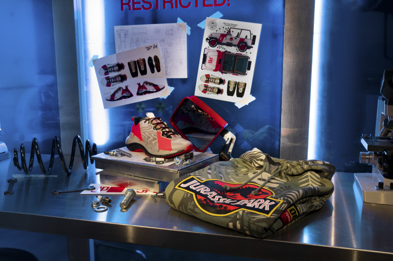 De entre las joyas fruto de la colaboración nos encontramos las Instapump Fury OG (200 €) inspiradas en los todoterrenos que usaban en la película, fabricada con gráficos de rozaduras y desperfectos en la suela y los laterales, disponible en tallas para adultos y niños. Las Club C 85 (65 €) inspirada en el Dr. Alan Grant, has sido confeccionadas en color caqui con un upper de ante, el collarín con forro de bandana y la suela en color denim y está disponible en todas las tallas incluido para bebés.