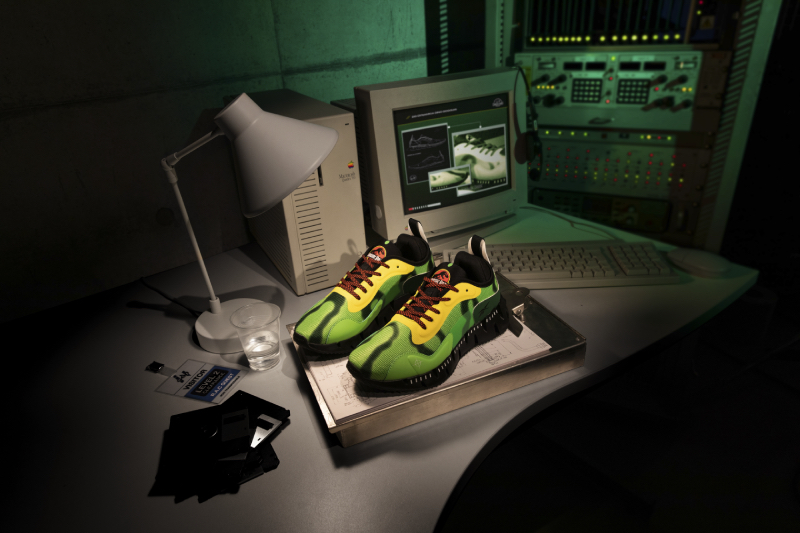 Seguimos con el modelo más salvcaje, las Classic Leather (120 €) inspiradas en la fascinación del Dr. Ian Malcolm por la teoría del caos, la silueta mezcla texturas y patrones que van desde florales hasta detalles en tigre. Seguimos con las Zig Devil Kinetica (140 €) diseñadas para simular los coches de los empleados del parque, incluye detalles como la lengüeta que simula el espejo retrovisor de dicho vehículo y la mediasuela con salpicaduras inspirada en las persecuciones a través del barro.