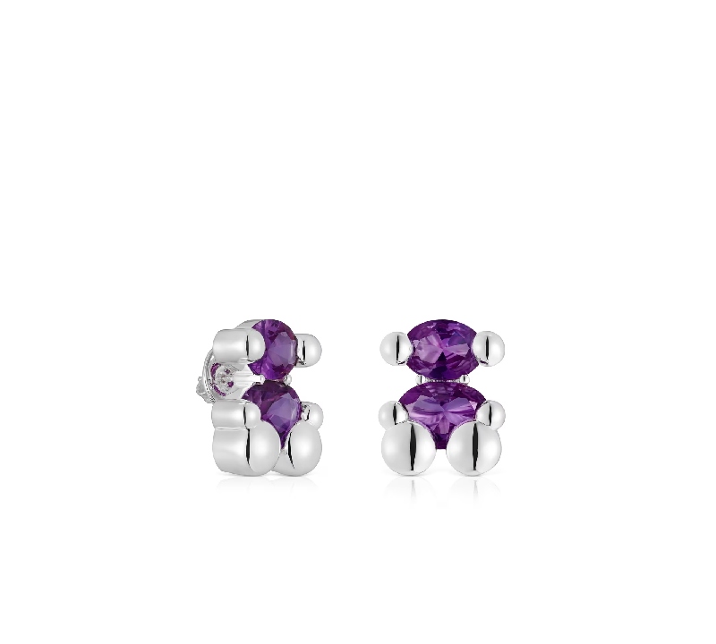 ¿Tú también quieres estos pendientes? ¡Es normal! Son dos joyas con un zafiro en color lila que captura la atención al instante, además de contar con el icónico oso en plata. Son el modelo perfecto para llevar en estas fiestas o para darle un toque especial a tu look, incluso en esos lunes en los que todo parece un poco aburrido.