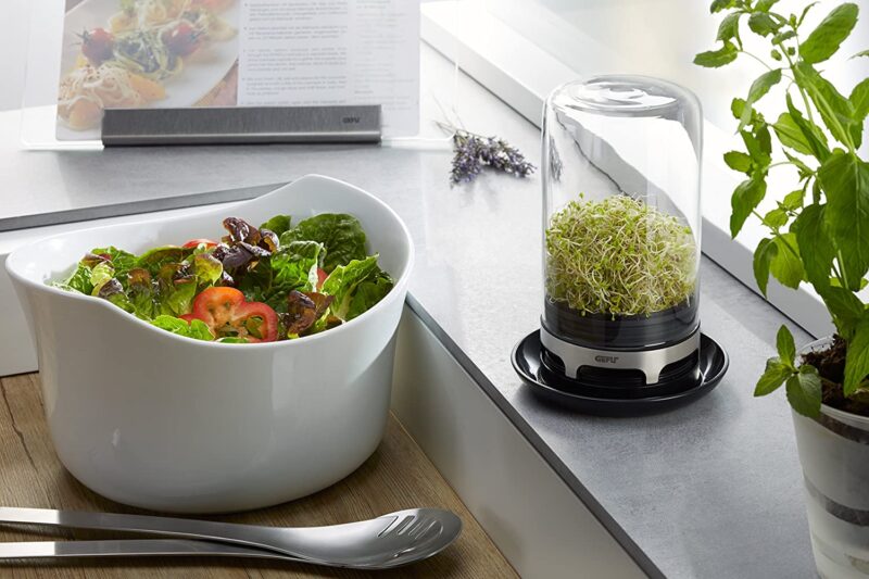 Otra opción similar a la anterior es un germinador de semillas para cultivar tus propios brotes. Este innovador germinador crea las condiciones climáticas necesarias para que las semillas de lechugas y otros vegetales broten en tu propia cocina.