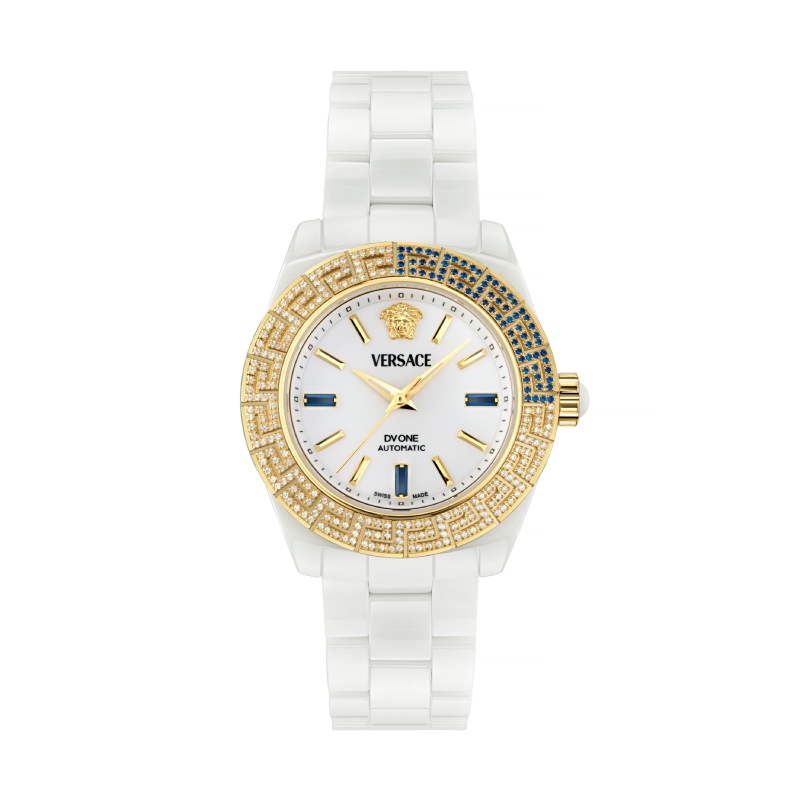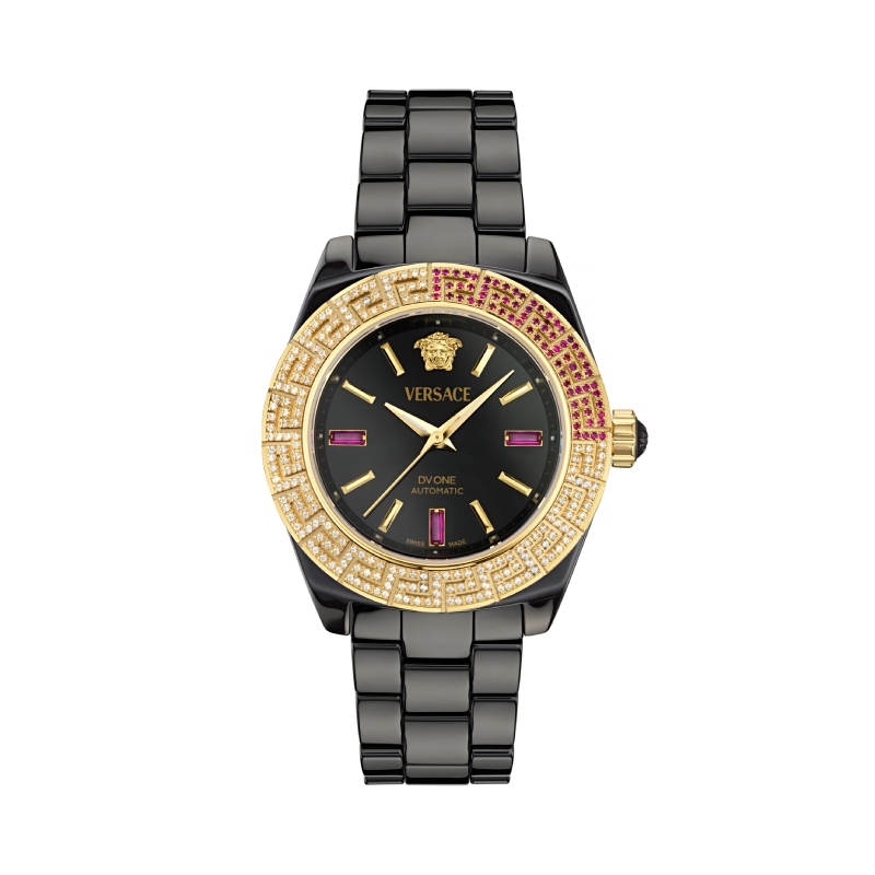 El modelo DV One de Versace se ha convertido ya en el buque insignia de las colecciones relojeras de la casa. Gracias a un diseño tan atemporal como atrevido, esta pieza de la relojería de lujo brilla por ser un testamento del alma Versace: estrambótico a la vez que elegante. Aquí, elementos icónicos del léxico de la casa como la Greca y la Medusa se vuelven los protagonistas más especiales en una construcción sobria de cerámica.