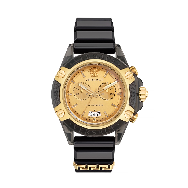 Siguiendo con su colección de regalos de San Valentín, Versace Watches nos presenta la versión más atrevida y luxe de su reloj deportivo. Su sport watch ostenta una caja de 44MM hecha en policarbonato negro y una correa de poliuretano a juego. Como detalles más distintivos, el bisel se acentúa con 4 tornillos gruesos, para resaltar ese aire deportivo y casual. En el dial, podemos ver a la Medusa coronando la posición de las 12 y dos subesferas de cronógrafo, que se accionan con los pulsadores junto a la corona gruesa. Una ventana de fecha en la sexta posición en blanco remata el look.