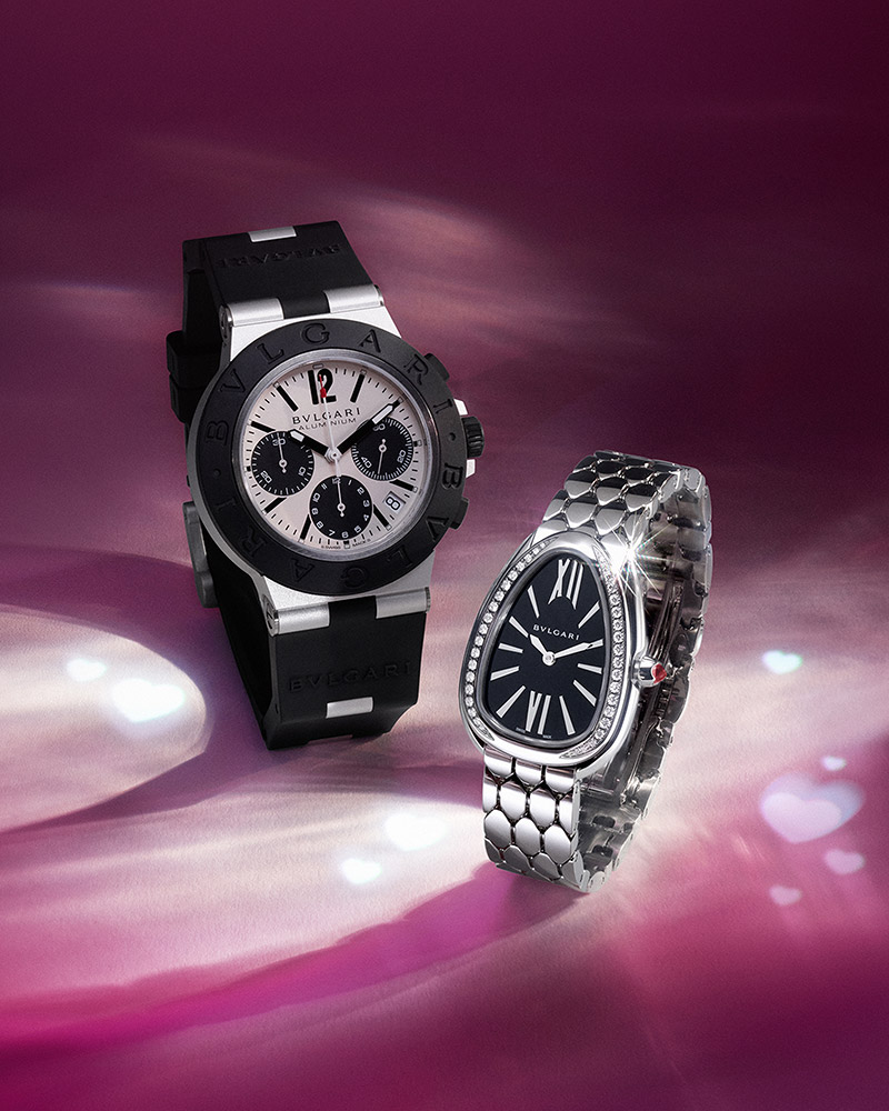 ¿Qué regalo puede combinar con las mejores joyas? Un reloj, claro. Bvlgari nos ofrece en su guía de regalos de lujo para San Valentín una gran selección de modelos icónicos. En los modelos de mujer tenemos como estrella el Serpenti Seddutori, con una caja en forma de cabeza de serpiente y correa de acero que simula sus escamas. También tenemos su versión más extrema, el Serpenti Turbogas, que incluye un brazalete que se envuelve en el brazo; simulando que tenemos una víbora enrollada en la muñeca. Para las de estilo más clásico, tenemos el reloj BVLGARI BVLARGI, de caja redonda y un bisel con el logotipo de la casa. Y si buscas un reloj para hombre, Bvlgari nos ofrece sus dos modelos más icónicos. En primer lugar, tenemos el Octo Finissimo, de diseño ultraplano y caja octogonal en acero con dial azul. Y para los de estilo más deportivo, el clásico de la casa: el Bvlgari Aluminum, un cronógrafo en clave monocromática de aluminio y titanio contrastado por detalles en negro y correa de goma.