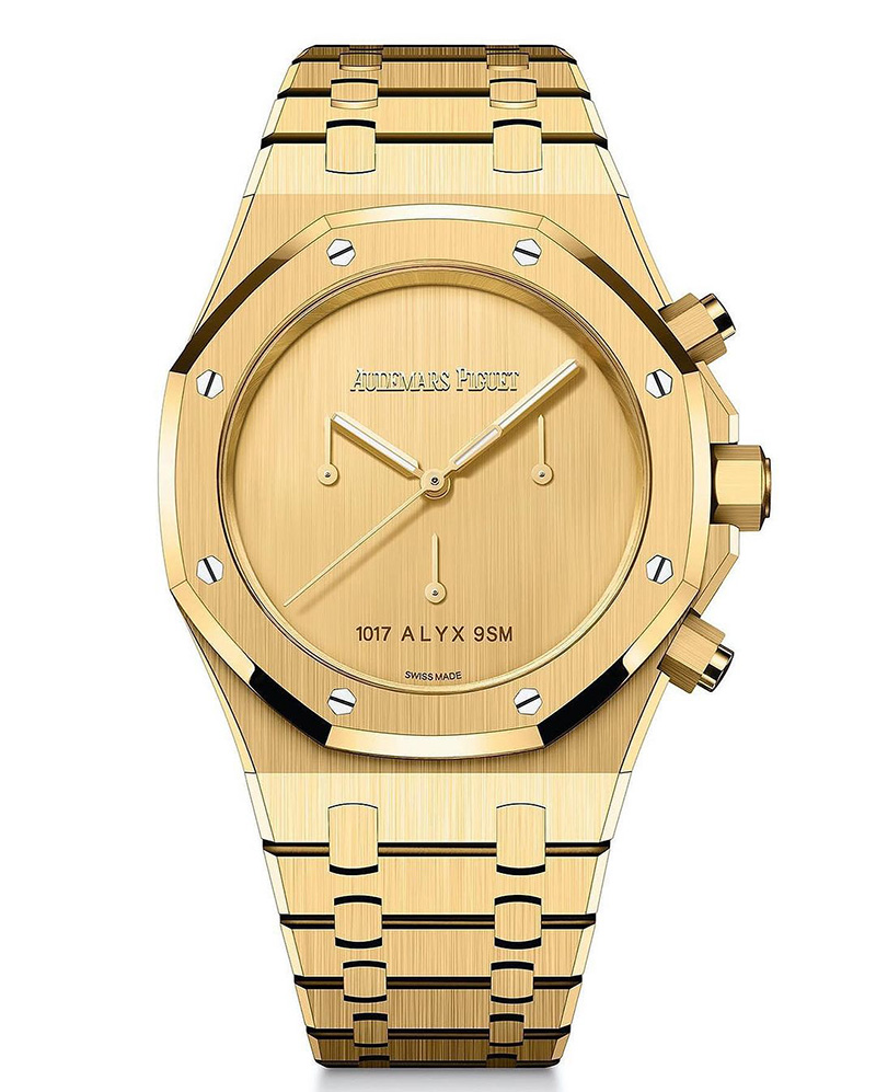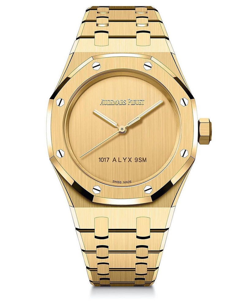 Tras haber presentado una colaboración no oficial de estos mismos relojes junto al customizador Mad Paris, llega por fin una unión entre Alyx X Audemars Piguet. La unión de la casa relojera y la firma de high street de carácter utilitario presenta versiones reimaginadas de modelos icónicos de la gama Royal Oak acabados en oro blanco y oro amarillo. También de esta unión surge una pieza única que será subastada con fines benéficos.