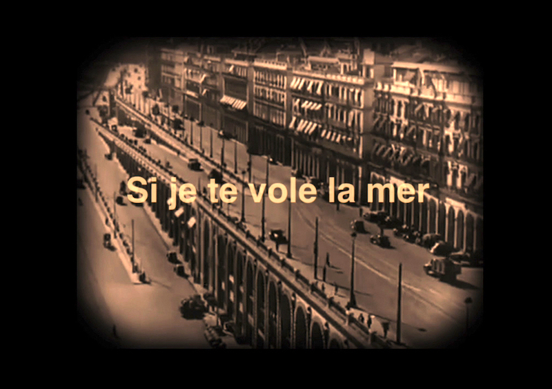 Tomando como punto de partida el diálogo epistolar entre la artista y la Kasbah —a quién da voz el poeta argelino Cedric Chaabi— Si je te vole la mer/Si te robo el mar sumerge al espectador en un viaje hipnótico, casi erótico y profundamente honesto. Un viaje que atraviesa el camino entre el yo y el otro con el fin de desestabilizar la simplicidad reduccionista que demasiado a menudo adoptamos para describirnos. Un ejercicio etnográfico, que mezcla la investigación, el estudio de la periferia, o el impulso civilizador ya en ruinas, en una tarea imposible construida sobre los fundamentos de una alteridad que debería ser más ficción que realidad.