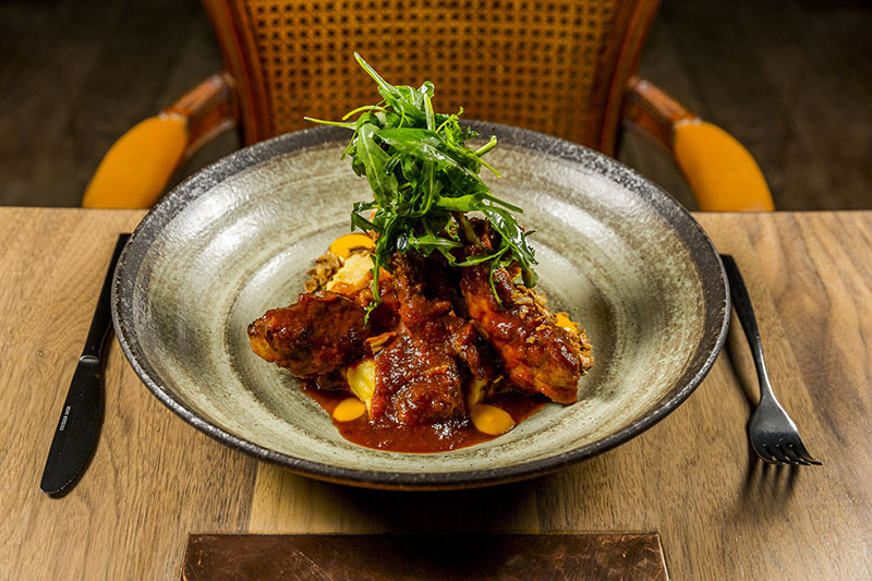 Bestiales nos parecieron las Tortas de Rabo de Toro con Chile Ahumado, con su rabo de toro deshuesado sobre torto de maíz, salsa de yogurt, pepino, encurtidos y cancha. Demasiado protagonismo toma el chorizo en el Mejillón Gocho, alianza gallega aliñada con leche de tigre de ají amarillo.