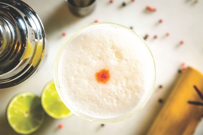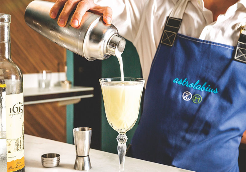 Imágenes superiores: preparación de un Pisco Sour en Astrolabius