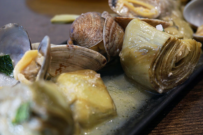 Manda la temporada. Si se quiere perdiz (roja y en dos cocciones), anda usted en las últimas. Si le priva la gracia del bao, ahí tiene uno de panceta de Pekín, uno de ropa vieja y humus, y uno más de calamares con alioli y kimchi. Sin dejar la fusión, el satay de atún con tamarindo. ¿Salivando? Para continuar, las alcachofas y almejas fritas con ajos tiernos y hierbabuena. Y para ir cerrando la contienda, la presa ibérica con patatas “puente nuevo”.