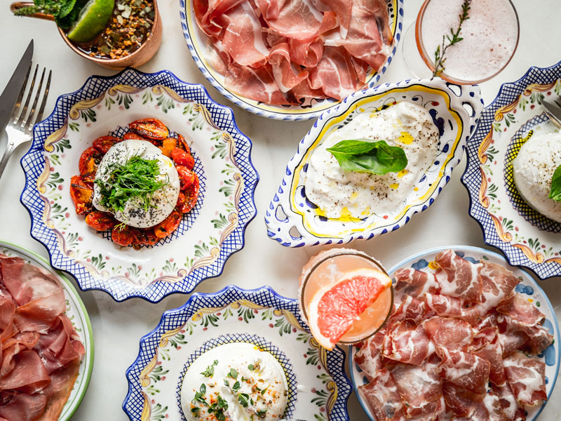 Es una gastronomía muy variada inspirada en diferentes zonas de Italia, de norte a sur. Su carta tiene una parte de entrantes que incluye antipasti, buenos productos italianos sin cocinar y algunas elaboraciones especiales como “No puerro Más” (9€) que es un puerro asado al Josper con una salsa verde casera, stracciatella y alcaparras que podría estar perfectamente en una carta de restaurante con Estrella Michelin. Un plato perfecto para empezar, ideal para compartir entre dos, y que se puede acompañar con otro de sus entrantes recomendados que es el Vitello Tonnato (10€), un redondo de ternera española acompañado con una salsa típica de Piemonte elaborada con atún, anchoas, alcaparras y mayonesa.