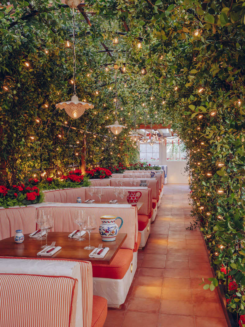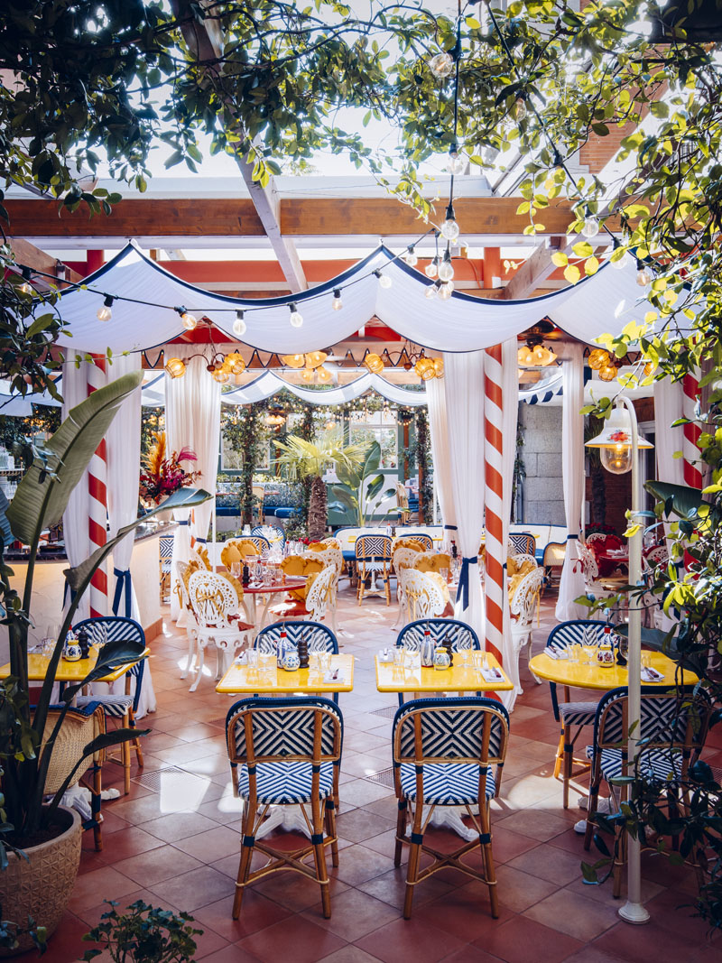 Un espacio que tiene un gigantesco invernadero-terraza con vegetación que lo hace especialmente apetecible en tiempos de Covid. Su interiorismo es anti minimalista y lleno de colores. Un detalle dice mucho del lugar: todas las plantas son de verdad, esto ya te da una idea de la honestidad del restaurante Bel Mondo. Pero podéis pensar ¿qué hace un grupo francés montando restaurantes italianos?