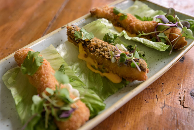 Imagen superior: Sam de Rodaballo con mayonesa de Siracha y hierbas. 12,50 €