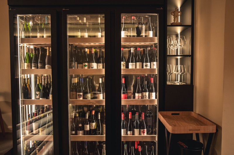 La selección de vinos sigue la misma filosofía que la cocina. La carta está dividida entre referencias catalanas y gallegas, priorizando vinos de pequeñas bodegas y producciones de baja intervención. Un 80% de la bodega se centra en estos territorios, con etiquetas que rara vez se encuentran en otros restaurantes de Barcelona.