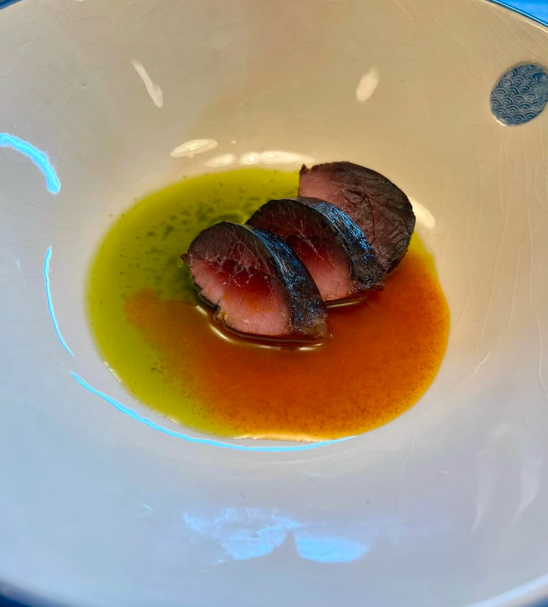 En el restaurante se hace una libre y personal interpretación del recetario familiar de 1912. Pero aun así, el recetario es una “estrella del norte” que dirige los pasos en cocina. La idea primigenia era tener un asador de pueblo. Previamente a Bestia Marina, Omar ya había levantado otro establecimiento llamado Sargo Carbón, que era una especie de cocina marina callejera. Este establecimiento llegó a tener un Solete Repsol. Además, años atrás Omar también había creado la marca “charcutería marina”. Bestia Marina exige cierto nivel de investigación, no al estilo de la alta cocina, porque tampoco es lo que buscan, pero sí requiere cierta experimentación sobre la utilización y las posibilidades del producto. Omar tiene mucho interés en las fermentaciones o maduraciones o en cómo trabajar la histamina del producto. Al final, es un restaurante de mar que funciona como un restaurante de montaña. Por lo tanto, en cierta medida Bestia Marina sí se asemeja a un asador de pueblo, intentando siempre respetar el sabor original del producto. Sus clientes extranjeros son básicamente nórdicos y franceses. En los últimos tiempos han comenzado a acudir ingleses, holandeses y alemanes. De España, vascos y catalanes son sus principales visitantes. Los paisanos también están acudiendo con frecuencia. Este es el gran regalo de este año para Omar: conquistar a los vecinos con sus platos.