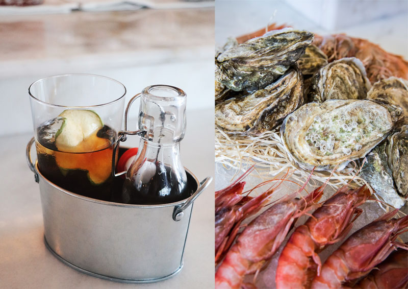 Imagen superior. Izquierda el vermút se sirve así. Derecha: Marisco de Carbón Negro
