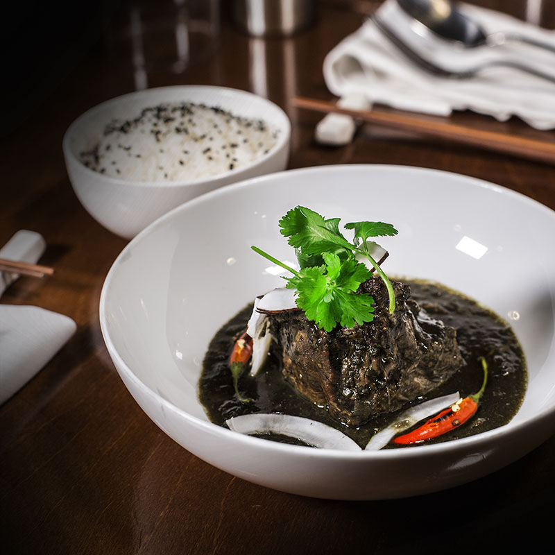 Seguimos viaje con un Curry negro de Sri Lanka con especias tostadas. No deja de ser un plato algo más diferente que demuestra ligereza al no incluir leche de coco. “Una receta no apta para todos los paladares”, advierte Luis Miguel Gil –jefe de sala y, junto a su hermano Julián, socio de Chifa—.