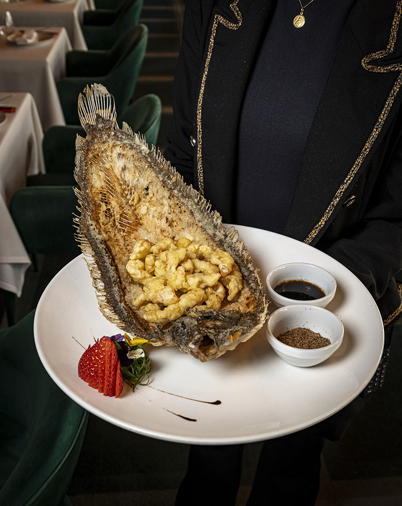 Como platos principales, Don Lay ofrece una selección de productos del mar y de la tierra, que harán las delicias de los paladares más exigentes. Destaca la Ostra Sorlut Doble Cero (14€) al vapor con fideos de soja, cebolleta china, ajo y guindilla, un bocado jugoso y sabroso que combina la textura y el sabor de la ostra con el toque picante de la guindilla. También el Lenguado salvaje en tempura, (36€ pp/ 2pax) un pescado fino y delicado que se envuelve en una masa crujiente y se adereza con pimienta de Sichuan y anís estrellado, dos especias que le aportan un aroma y un sabor únicos. Y por supuesto, el Cochinillo cantonés, (70€) un plato típico de la región de Guangdong, que consiste en un lechón asado al horno hasta que su piel queda crujiente y dorada, y que se sirve con pan Mantou y caviar, para darle un toque de lujo y sofisticación.