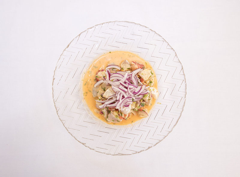 Ceviche de lubina macerado en jugo de lima y cilantro