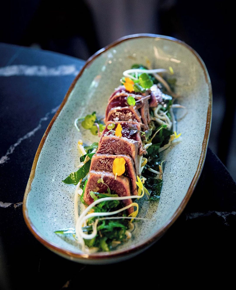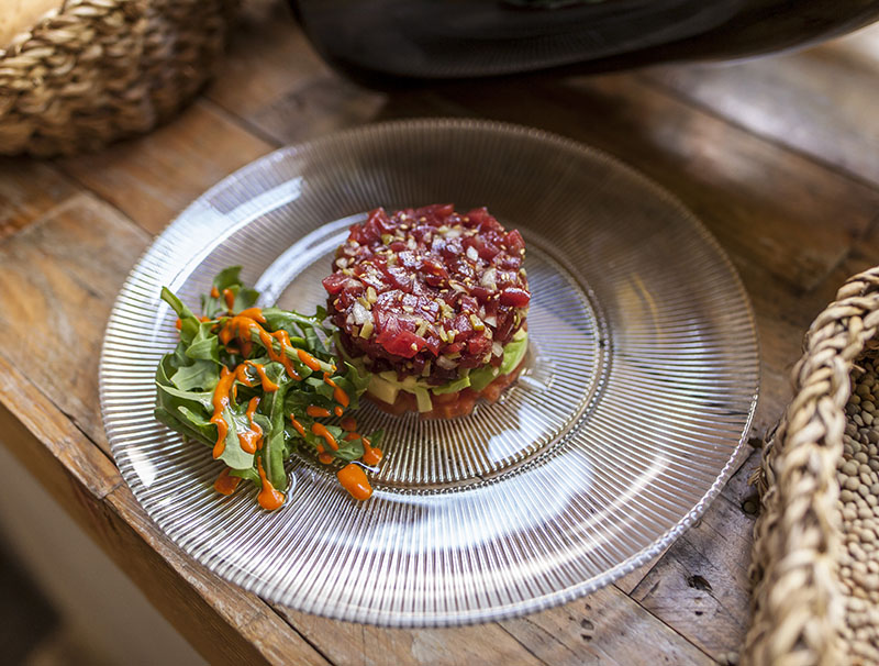 En las estaciones más cálidas, como ahora en verano, la oferta se enriquece con creaciones como el Ceviche de lubina macerado en jugo de lima y cilantro (28,00€), el Tartar de atún con cassé de tomate, aguacate y alga wakame (26,50€), o el Pulpo de pedrero a la brasa con mahonesa cítrica (22,00€)