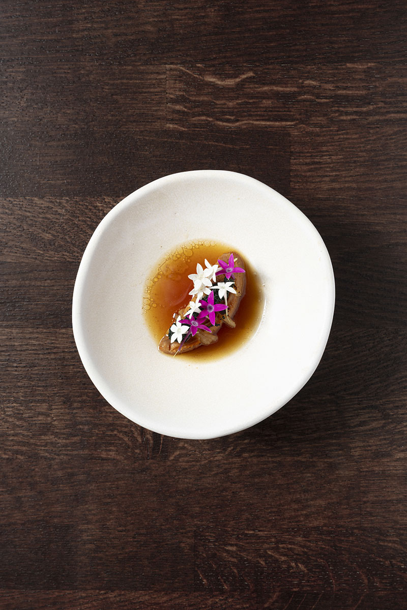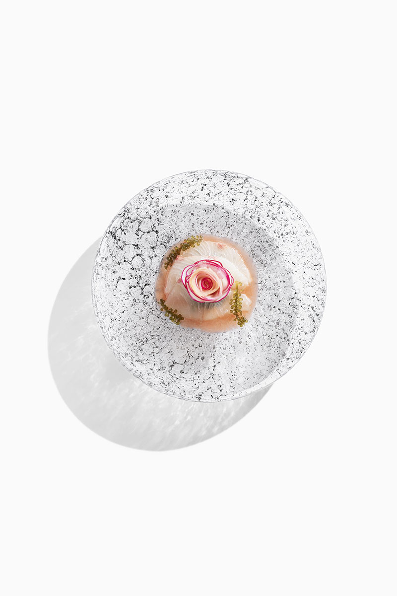 Mero / Kimchi blanco / Calamar / Panceta ibérica / Daikon / Flores