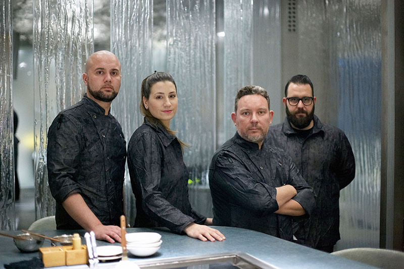 Imagen superior: el equipo del restaurante Enigma formado por Oliver Peña, Cristina Losada, Albert Adrià y Marc Álvarez