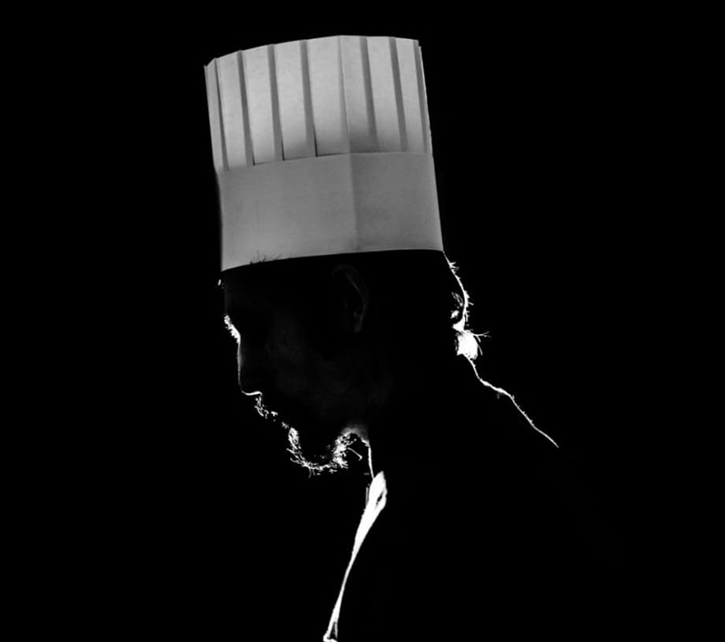 Si pidiésemos a un niño o niña en los años 90 que nos dibujase un cocinero, probablemente, el dibujo sería el de un personaje con pantalón de pata de gallo, chaquetilla blanca y gorro alto. Puede que difiera mucho, si encomendamos similar tarea, tan sencilla e inocente, a un niño del 2023. El resultado se acercaría más a un personaje con cresta y tatuajes, lógicamente, todo cambia. Lo de Ricardo Señoran es un compromiso y un respeto por la profesión, de ahí su look incólume con chaquetillas blanca y gorro alto. Todo un homenaje a los chefs de antaño. Aunque suene tópico, nos comenta que la cocina le salvo la vida y sin ella sería un farragua – palabra usada por su madre, en Extremadura, que significa desaliñado- de ahí el nombre del restaurante.