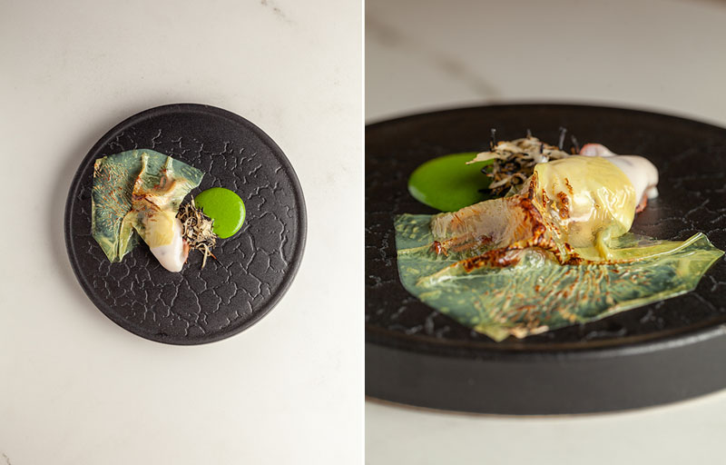 Un salmonete con forma de salmonete que brilla como un salmonete y sabe como un salmonete. Hay técnica para elaboraciones muy concretas, sus presentaciones son limpias y rotundas, apenas juega con tres o cuatro elementos en cada jugada. Y, lo que más seduce, no hay humo que disipar, todo sabe a lo que promete y la sencillez más reconocible se impone sobre la confusión. En definitiva, Gaytán no se aleja de lo esencial: la cocina. Más o menos distinguida, pero cocina real.