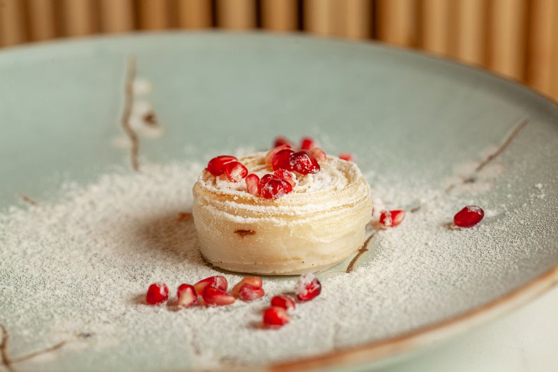 Imagen superior: Tatín de salsifí y granada