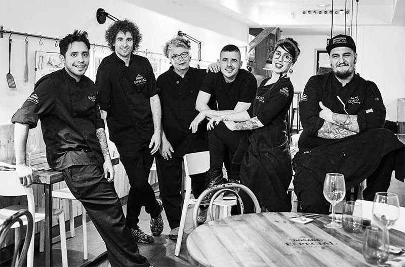 100% CANARIAS. Porque en Gofio las credenciales son innegociables. El nombre distingue a esa modesta exquisitez local, el gran básico nutriente del pueblo canario que no es sino harina de grano molino y tostado, casi siempre de maíz, o bien de otros cereales como el trigo o la cebada. Un ingrediente viajero en tiempo y espacio, y el orgullo de la supervivencia de un pueblo. El local tampoco aporta florituras en su simpleza rústica más allá de los cuadernos viajeros ilustrados de María Bombassat, también canaria, y de alguna pincelada de motivos atlánticos. Queda dejarse llevar por el acento de los anfitriones, que lucen irreverencia tatuada y visten con zapatillas y guantes negros (al menos el día de nuestra visita), algo a priori no muy higiénico aunque sí a juego con el color de sus vaqueros y camisetas. Su deje canario vacilón acaba por embriagar a la clientela que aún así deberá armarse de paciencia si no quiere desesperar ante los ritmos ultra cadenciosos de la sala, deficientemente insonorizada.