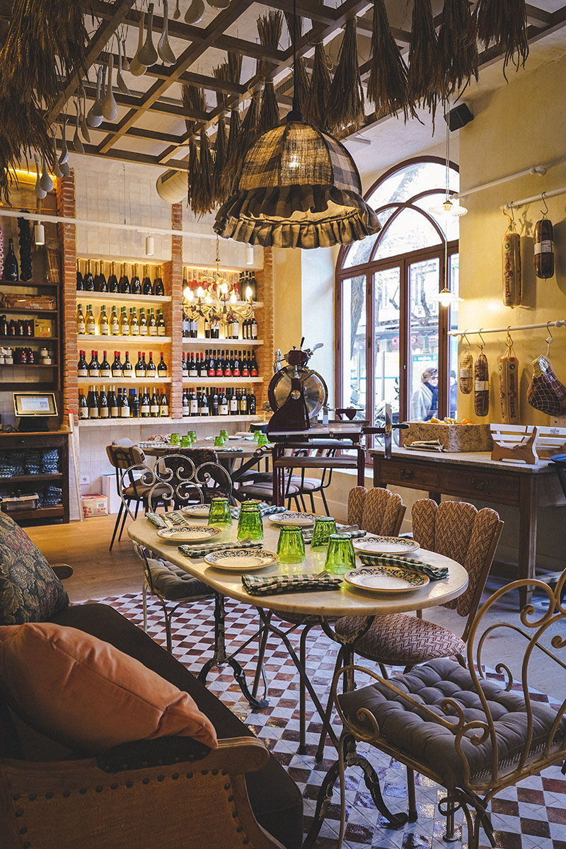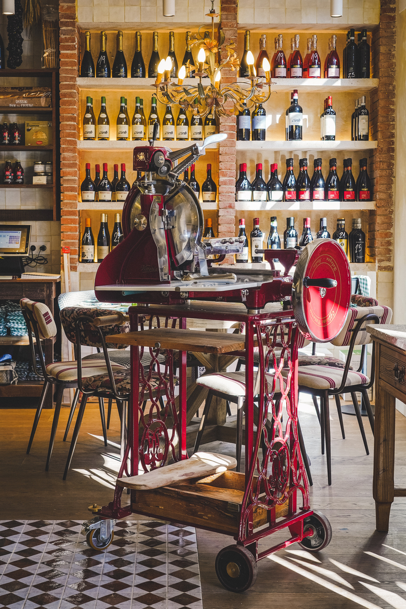 A cargo de la decoración del restaurante Il Posto se encuentra Banús Arquitectura, que, a través de materiales como la madera, el mármol, el ladrillo visto y la cerámica, ha conseguido crear un ambiente informal y acogedor. Con una capacidad de 60 personas en su interior y una terraza con sitio para 24 más, la luz predomina en el espacio, en el que nos topamos con piezas tan originales como una máquina para cortar embutidos de la marca Victoria.