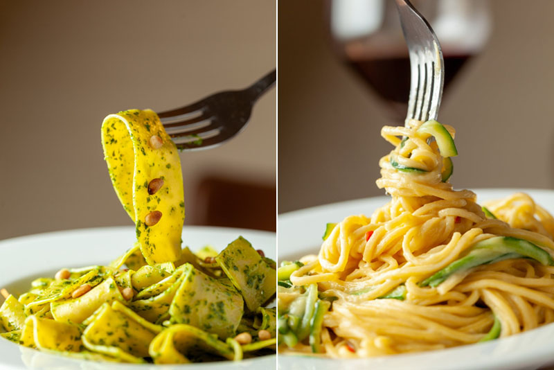 Además de algunas ensaladas y algo más de carne, podremos detenernos en varias recetas de pasta. Por un lado, unos Gnocchi Dorato que sorprenden por su singular ligereza. El secreto está en cocer la masa con el queso y luego dorarlos uno a uno en sartén. Y, por otro lado, los Pappardelle Ragú, con su carrillera mecida a fuego lento durante unas 12 horas. Sabrosos, aunque tal vez podrían estar mejor ligados.