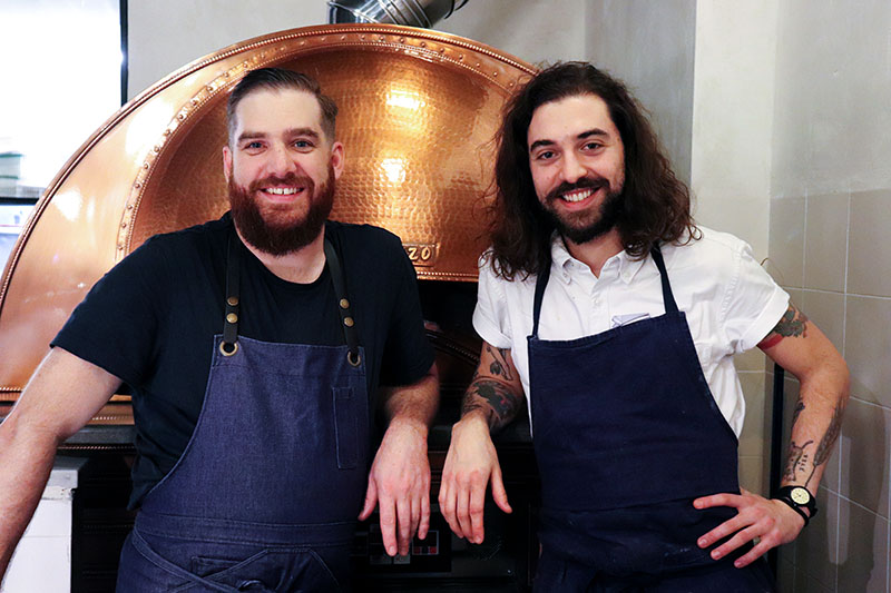 Imagen superior: Byron Hogan y Carlos Eduardo Gasparini, “Cadu” en el restaurante Isabella