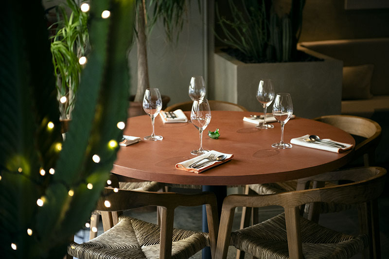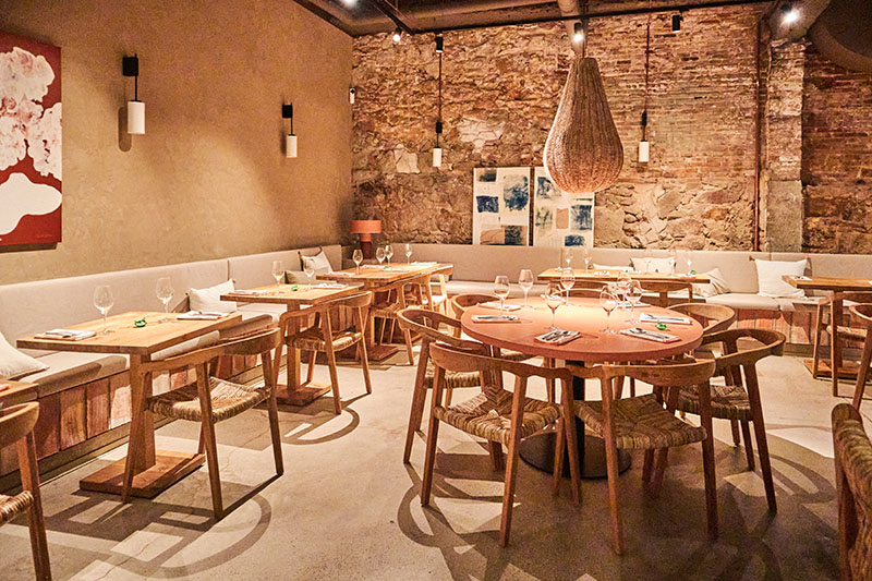 En consonancia con la propuesta gastronómica, el restaurante Jiribilla demuestra un firme compromiso con la sostenibilidad al recuperar y reutilizar elementos del local anterior. La denominación “jiribilla,” arraigada en México, encapsula la esencia del proyecto, denotando inquietud, doble sentido e intención.