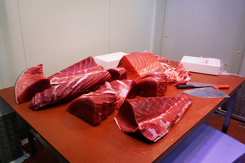 Imagen superior: distintos cortes de atún recién ronqueado en Mercamadrid
